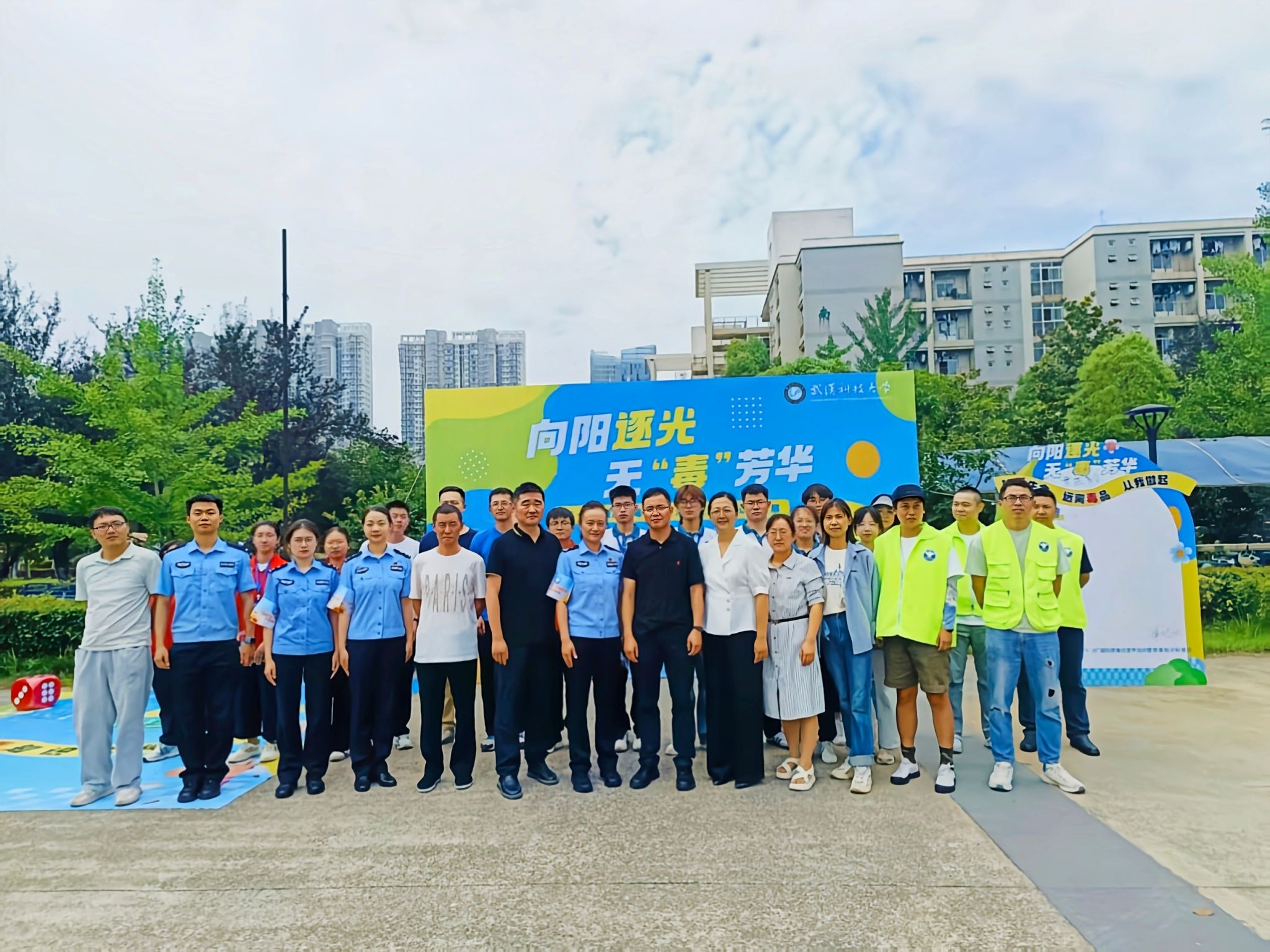 (覃欣欣)为让学生深入了解毒品相关知识,提高禁毒意识,6月12日,“零度”禁毒志愿服务队联合洪山区反恐怖工作和禁毒委员会、湖北省女子强制隔离戒毒所、洪山区人民政府青菱街道办事处、武汉市公安局洪山分局青菱街派出所在南苑食堂广场开展了以“向阳逐光,无‘毒’芳华”为主题的“6.26”国际禁毒日宣传活动暨禁毒知识科普展。我院党委书记黎宇宁,执行院长刘剑锋,党委副书记兼行政副院长孟佳,学术副院长廖兴华,团委书记李显出席此次活动。