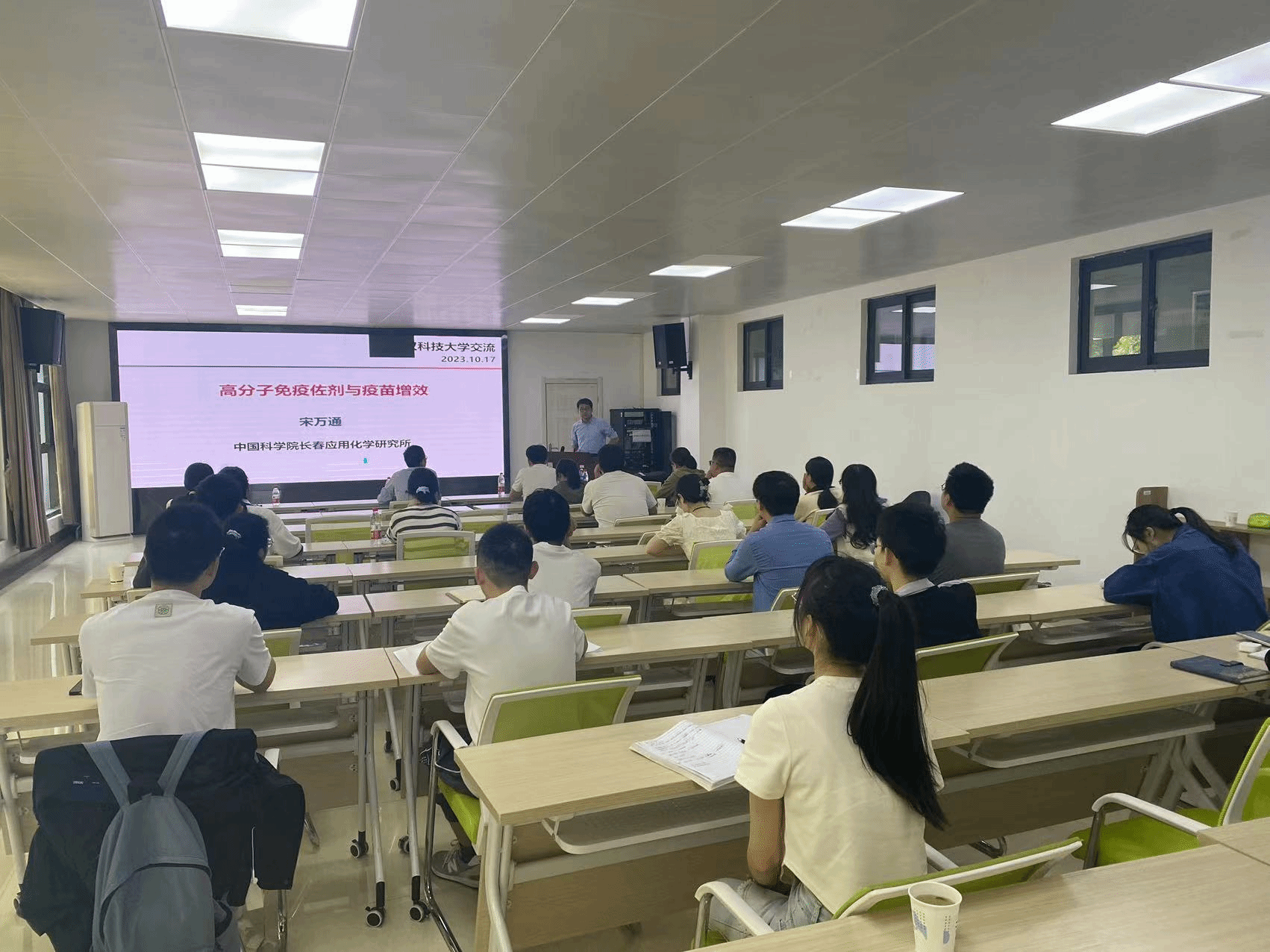 武科大网讯(通讯员李钰策) 10月17日,中国科学院长春应用化学研究所宋万通研究员和西安交通大学成一龙教授受邀来校开展学术讲座,讲座题目分别为“高分子免疫佐剂与疫苗增效”和“组织修复高分子水凝胶”。生科院廖兴华副院长、李钰策老师、邱文秀副教授、徐承晨老师、郑鹏老师、徐尧老师等教师以及博/硕士研究生、本科生参加了本次讲座。