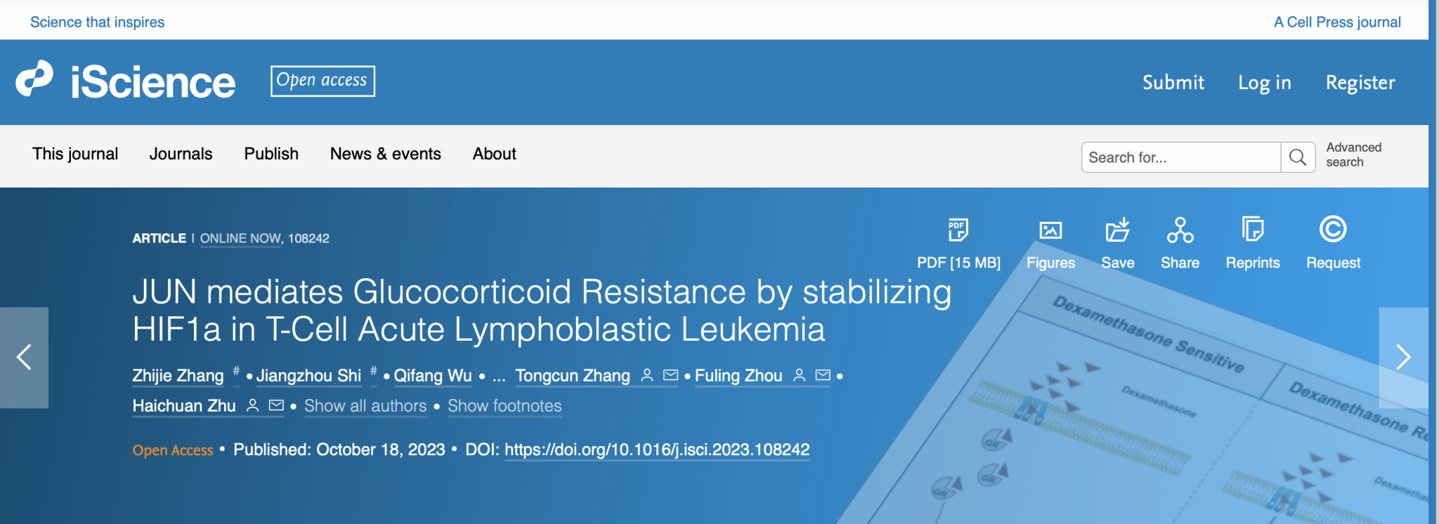 武科大网讯 10月18日,我校yl23411永利集团官网祝海川、张同存课题组联合武汉大学中南医院血液科周芙玲教授课题组合作在Cell综合性子刊iScience上发表题为“JUN mediates Glucocorticoid Resistance by stabilizing HIF1A in T-Cell Acute Lymphoblastic Leukemia”的研究性论文。