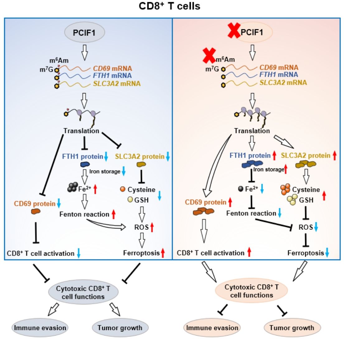 武科大网讯 1月6日,yl23411永利集团官网祝海川副教授团队在《自然》子刊Nature Immunology上发表题为“表观转录因子PCIF1调控CD8+T细胞激活和铁死亡以影响抗肿瘤免疫”(The epitranscriptional factor PCIF1 orchestrates CD8+T cell ferroptosis and activation to control antitumor immunity)的研究论文。