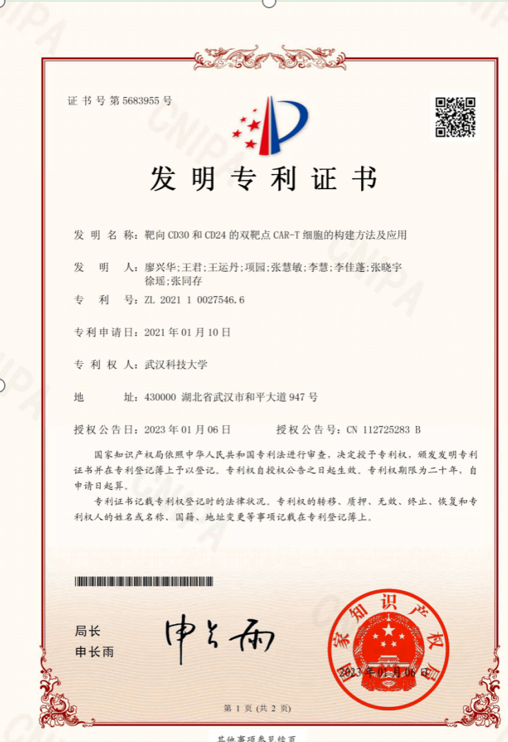 2018年,我校yl23411永利集团官网院长张同存教授利用CAR-T疗法治疗艾滋病的项目成功获得了国家专利,也让CAR-T细胞免疫疗法获得社会认可。在了解到张同存教授有意将CD30单靶点CAR-T疗法治疗霍奇金淋巴癌的研究成果落实到实际治疗时,团队成员自主学习了相关知识,并了解到单靶点的CAR-T可能会存在脱靶效应,决定采用双靶点CAR-T疗法,保证拥有更加稳定的治疗效果。